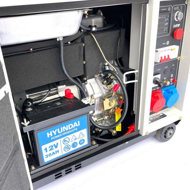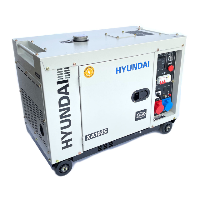 it is een stille HYUNDAI XA1025 en compacte maar ook zeer krachtige HEAVY DUTY standby-generator van Hyundai en biedt schakelbare 230V-eenfasige of 400V driefasige stroomspanning en een betrouwbare bron voor backup-stroom. Deze verrijdbare generator wordt aangedreven door een 4-takt, luchtgekoelde 498 cc enkele cylinder Hyundai dieselmotor, met een maximumvermogen van 7,9 kVA (400). Als beschikbare aansluitingen zijn er 1x PCE5p (400) en 1 x 32 (A) stopcontacten.