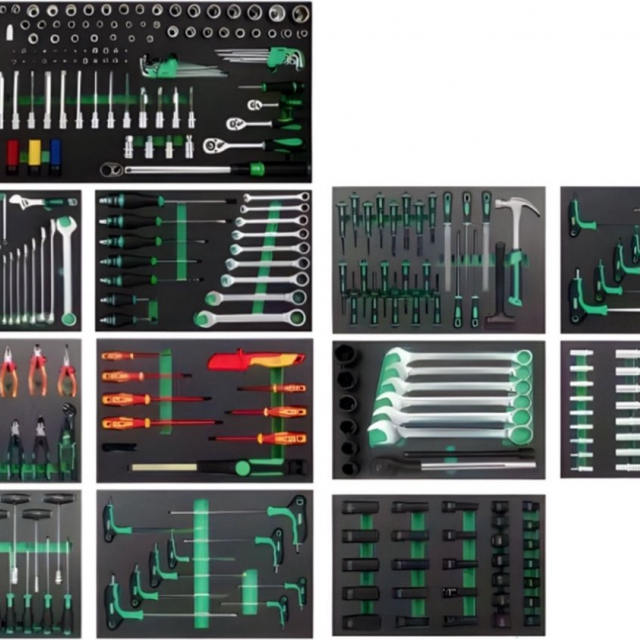 Door middel van de foam inlays kunt u na de werkzaamheden erg simpel zien of de gereedschapsset compleet is. Deze gereedschapswagen is simpel verplaatsbaar door de stevige stuurgreep en de robuuste vier wielen waarvan twee zwenkwielen met rem. Deze gereedschapswagen is geheel afsluitbaar door middel van 2 sleutels passend op het cilinderslot. De wagen beschikt over een extra sterk houten werkblad.