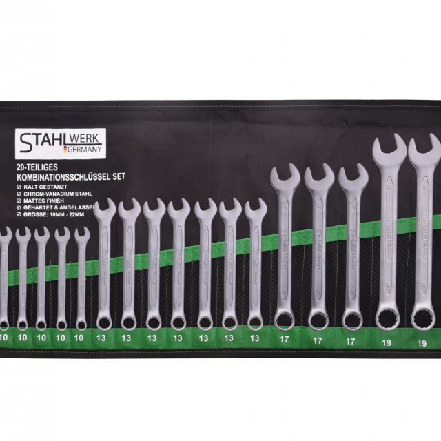 Ontdek de eersteklas kwaliteit van de Stahlwerk Germany SW2 steeksleutelset, gemaakt van superieur chroom-vanadium voor ultieme duurzaamheid en kracht. Deze set bestaat uit 20 steeksleutels, netjes georganiseerd in een stevige map voor eenvoudige opslag en vervoer.