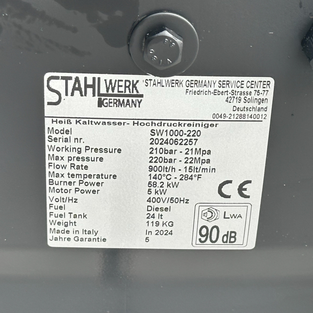 Der Heißwasser-Hochdruckreiniger SW1000-220 von Stahlwerk Germany ist die perfekte Wahl für Profis, die eine leistungsstarke, effiziente und zuverlässige Lösung für ihre Reinigungsanforderungen suchen.