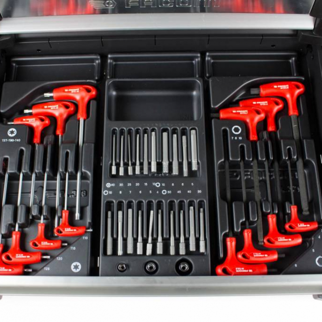 Deze zwarte Facom gereedschapwagen is gevuld met maar liefst 22-gereedschapsmodules. De wagen heeft een aluminium werkblad en kogelgelagerde laden. Deze gereedschapwagen is voorzien van levenslange Facom fabrieksgarantie en biedt de beste kwaliteit.