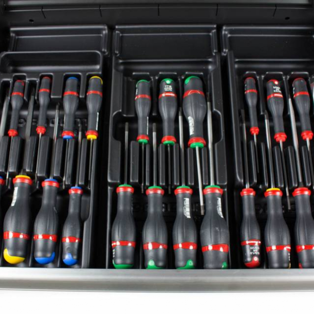 De wagen is simpel verplaatsbaar door uw werkplaats d.m.v. de robuuste stuurgreep en stevige wielen waarvan twee zwenkwielen met rem. De gereedschapswagen wordt door ons gratis (thuis)bezorgd!